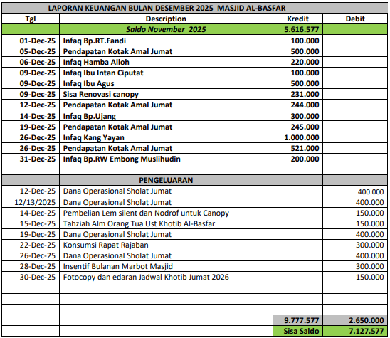 Masjid Al-Basfar merupakan Masjid yang memiliki peran penting dalam menerima dan menyalurkan zakat fitrah. Zakat fitrah adalah zakat yang wajib dikeluarkan oleh setiap muslim yang mampu pada bulan Ramadan sebagai bentuk pembersihan diri dan kepedulian terhadap sesama yang membutuhkan. Masjid Al-Basfar memiliki panitia zakat yang…